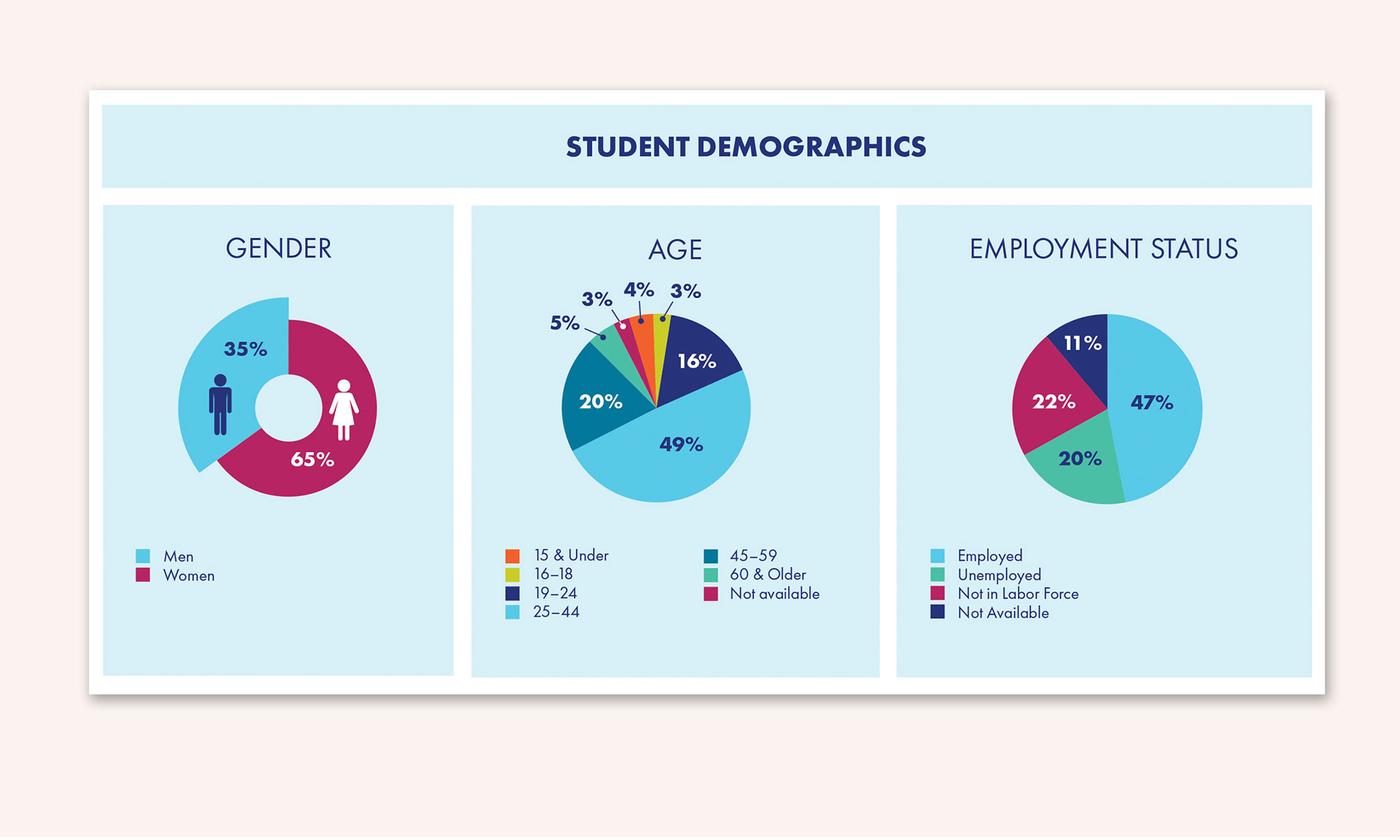Their goal was to take Excel spreadsheets and Word documents full of data and convert those statistics into visual data information. The different categories of information are divided visually by the background.